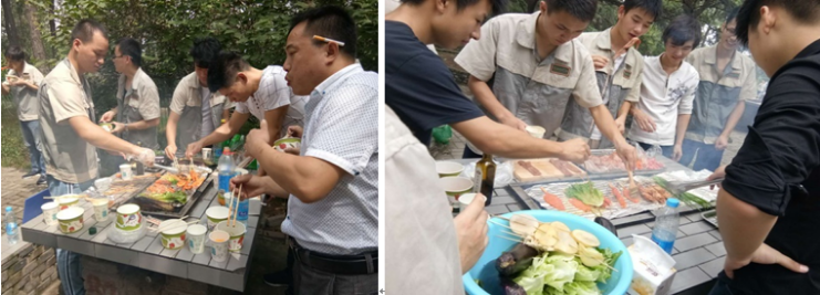 按照此次活動的預先安排 10:00部門人員在園內燒烤點集合,組織趣味燒烤大比拼。大家開始分工起來,擇菜的擇菜,配料的配料,各司其職,各組大廚紛紛閃亮登場,一較高下,好不熱鬧……