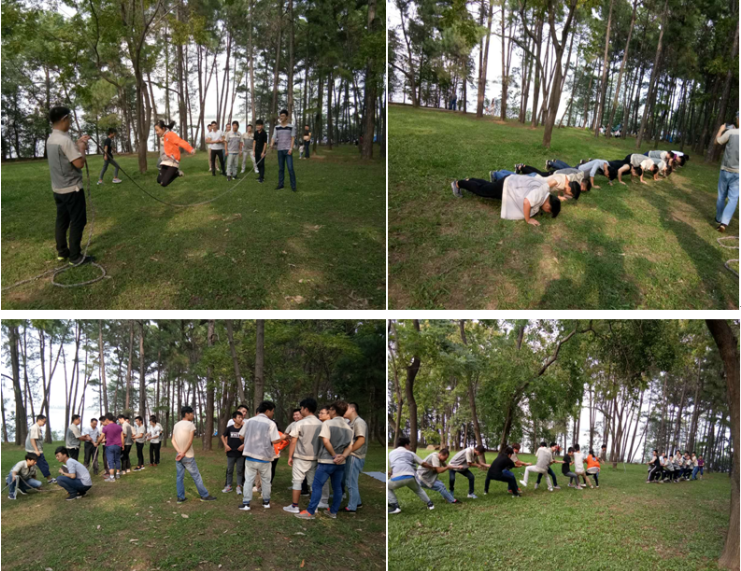 隨著溫度的上升,我們的熱情也升高起來,大家放松一切,拋開一切,都投入到了活動中來,所以,集體不僅是團結力量,同時也是最好的壓力釋放,一個人那只能叫發泄。這不,有人開始已經跳動起來了。集體跳繩是節奏感很強的運動,需要大家整齊劃一,配合默契。我們進行了A、B分組,A組由陳少鋒帶隊,B組由孫勇帶隊,裁判張四全。在規定時間內哪個隊跳的多則獲勝。B組以94跳的成績贏得了本次跳繩比賽。A組則表示:重在參與,接受懲罰:俯臥撐,但我們強烈建議再來一局,意猶未盡啊。在A組的建議下,臨時增加了拔河比賽,各組長開始給組員講解取勝方法及要點。最終A組取勝。